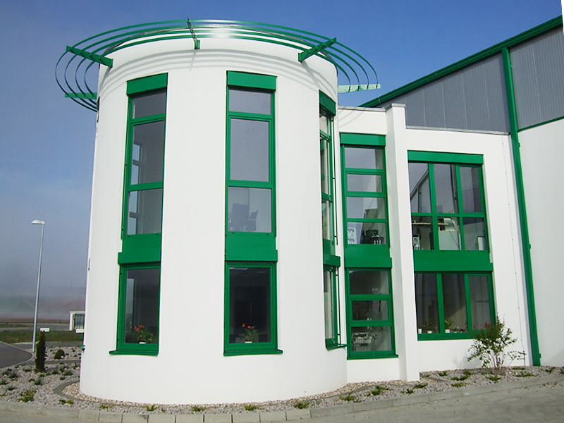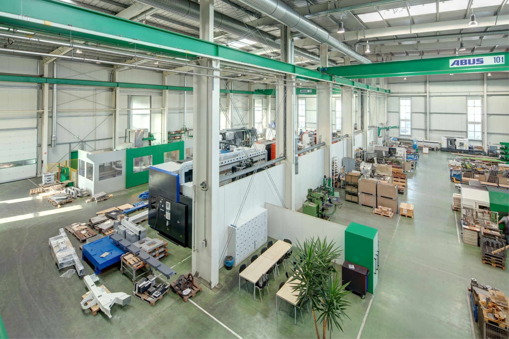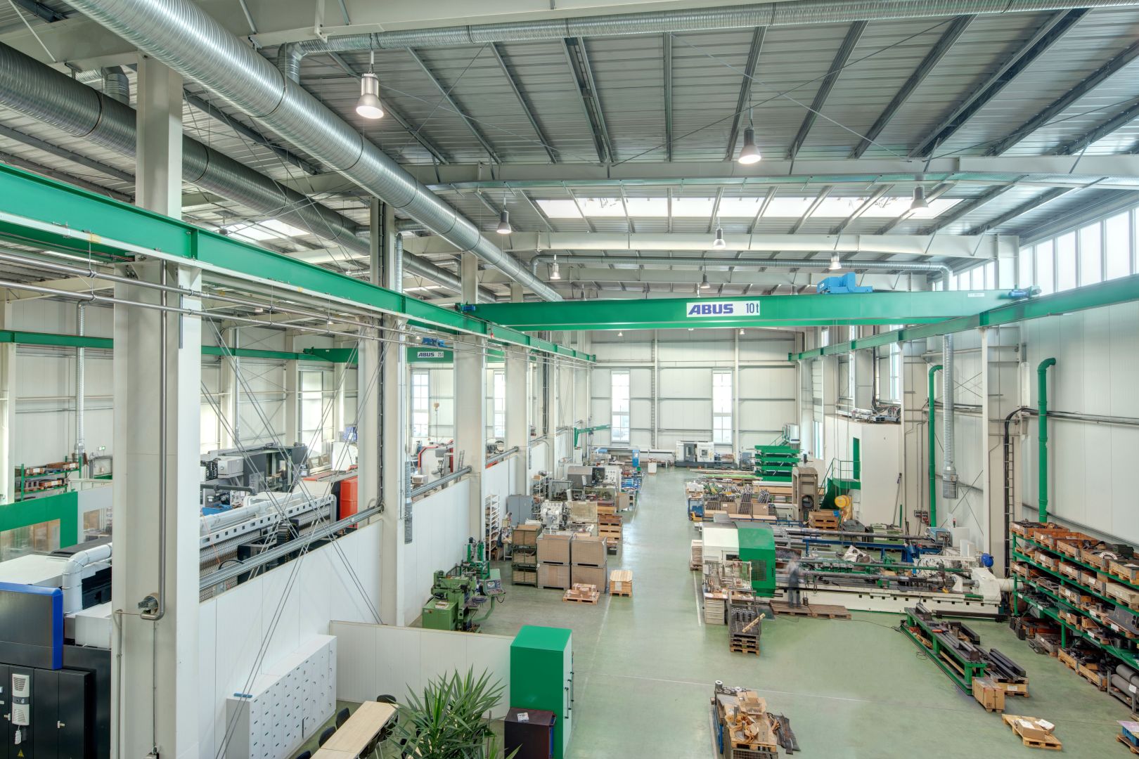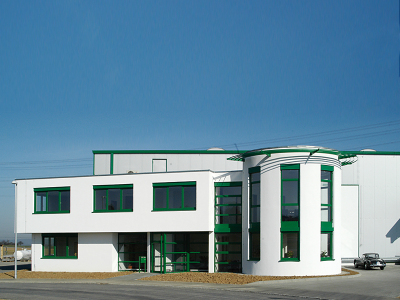 Die 2-schiffige Produktionshalle mit überdachtem Freilager hat eine Grundfläche von 3.884 m². Die Belichtung erfolgt durch 12 Stück Dachlichtbänder mit RWA-Anlage und senkrecht eingebauten hohen Fenstern. Um im Neubau optimal arbeiten zu können, wurden 2 Stück 20t und 2 Stück 10t Hallenkräne eingebaut. Giebelseitig befindet sich ein 3-schossiger Büro- und Sozialtrakteinbau mit Archiv, zudem ist auf dem Dach eine Photovoltaik-Anlage mit 150 kW Leistung installiert.